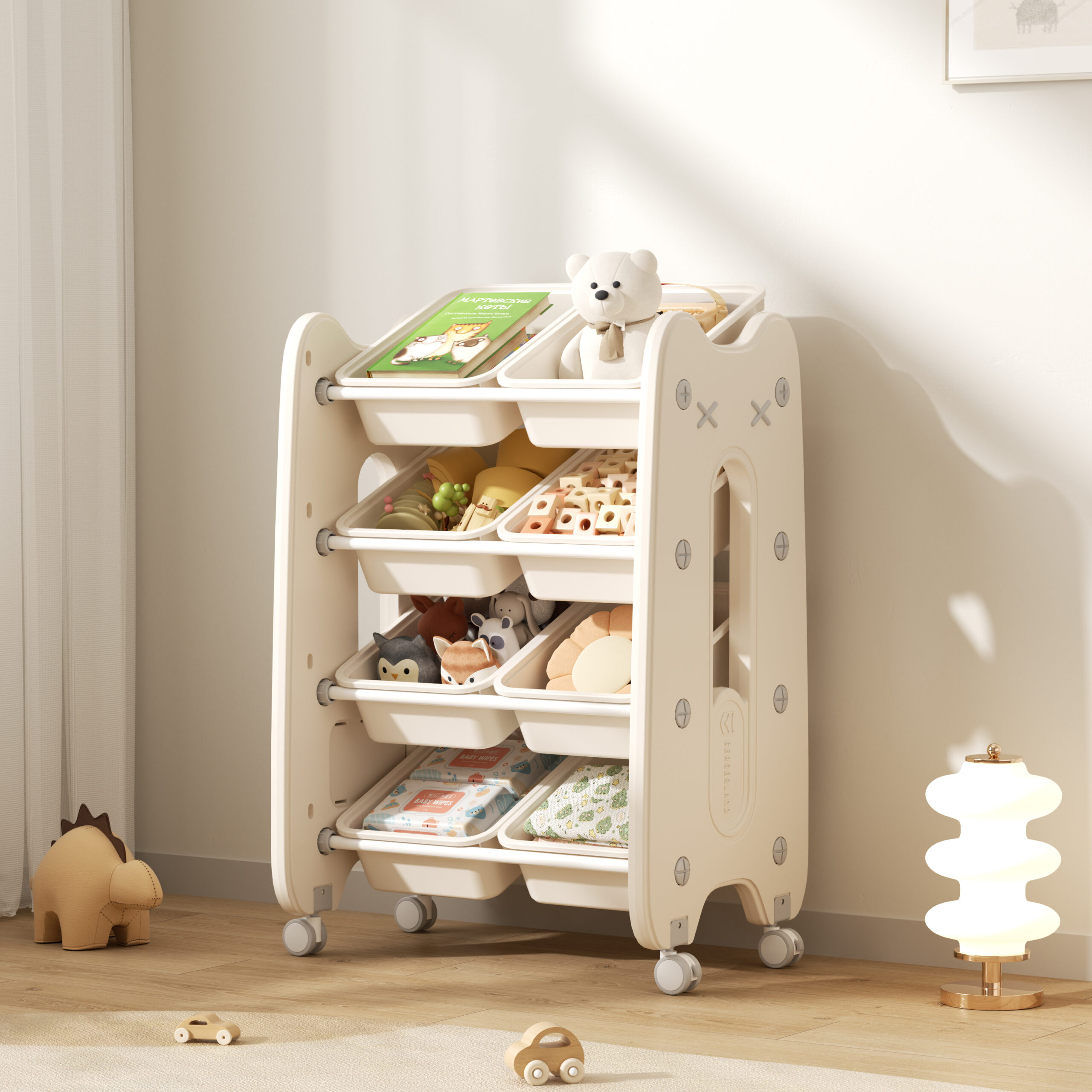 The Creme White model blends seamlessly with Scandinavian and modern interiors, making it a favorite among parents who value both aesthetics and functionality. Its compact size is perfect for apartments, nurseries, or smaller playrooms — giving retailers a space-saving option alongside the larger 9-bin organizer.