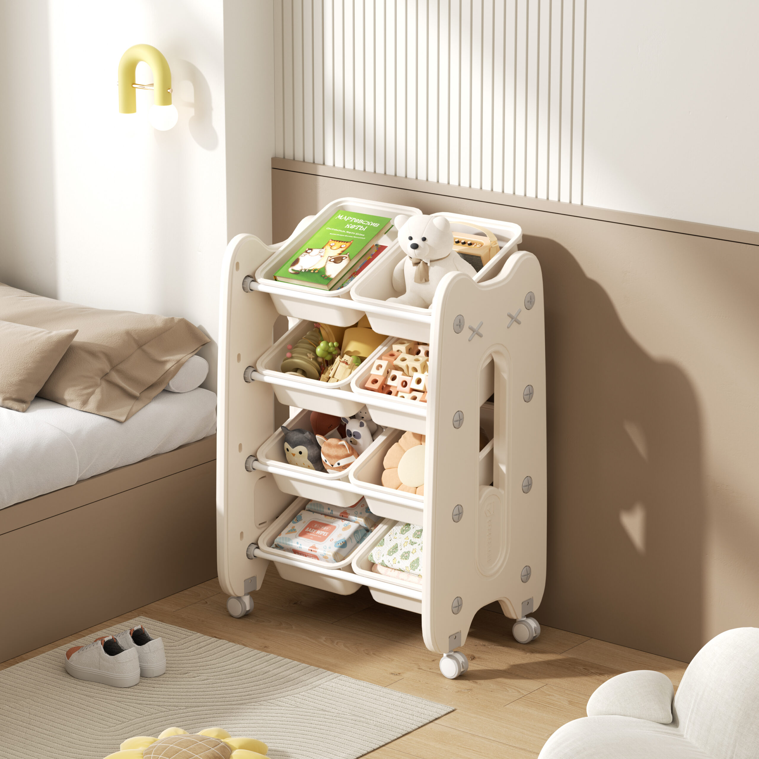 8 Removable Storage Bins – Perfect for toys, books, and everyday essentials